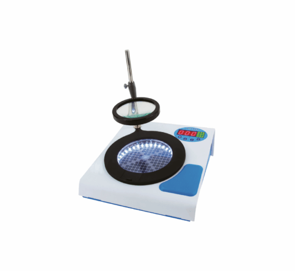 Contador de colônias – Quantifica colônias de micro-organismos em culturas, usado para controle microbiológico de medicamentos e materiais.