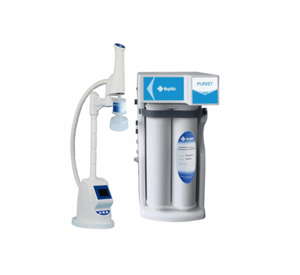 Sistema de purificação de água – Produz água ultrapura para a preparação de soluções e reagentes.