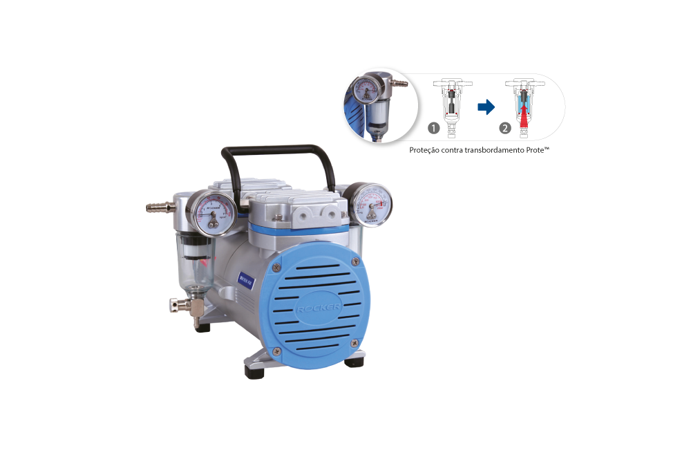 Equipado com proteção contra transbordamento ProteTM para evitar que o líquido seja sugado para dentro da bomba.