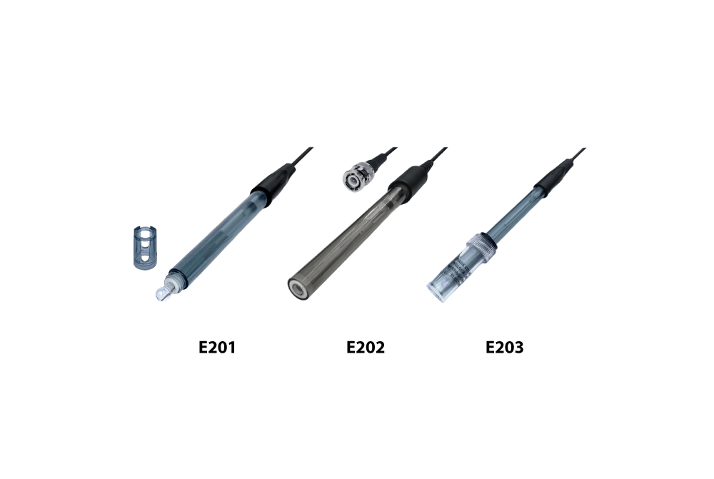 • E201-BNC – Eletrodo de pH de uso geral, adequado para medir os líquidos.