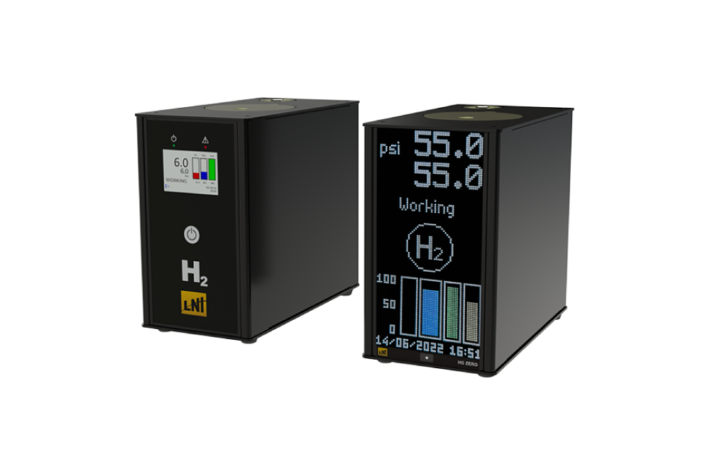 O HG MINI é um pequeno e inteligente Gerador com Membrana de Troca de Prótons (PEM) capaz de gerar até 300 mL/min de Hidrogênio com pureza superior a 99,999% e pressão de até 12 bar (174 psi).