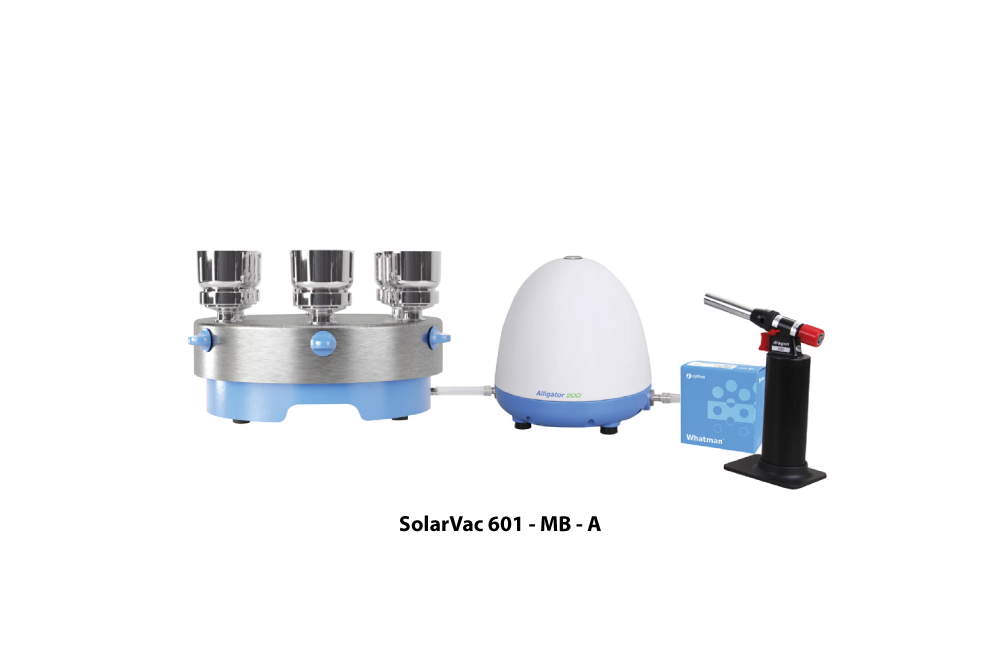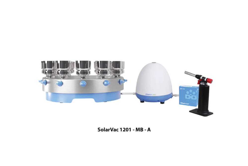 O SolarVac 601 / 1201 – MB – A inclui a bomba de diafragma para líquidos Alligator 200, manifold rotativo, queimador e membrana MCE. O sistema é projetado para o processamento de um grande número de amostras em testes microbiológicos.